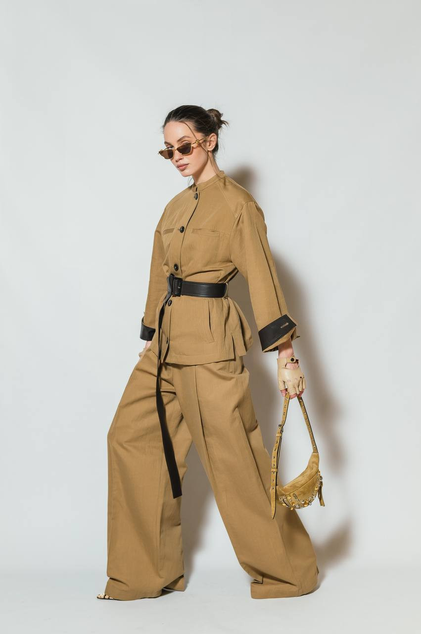 Коричневі штани з льоном