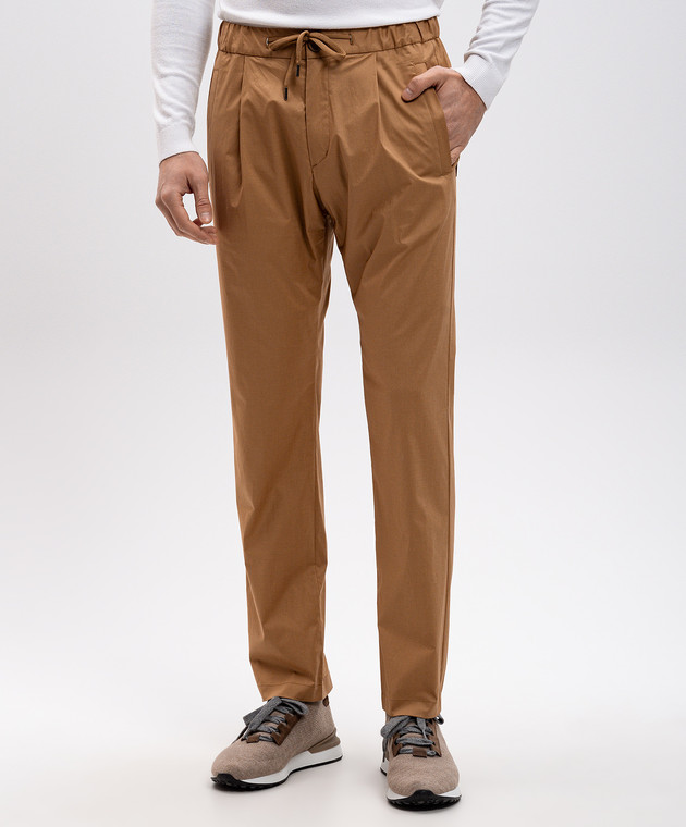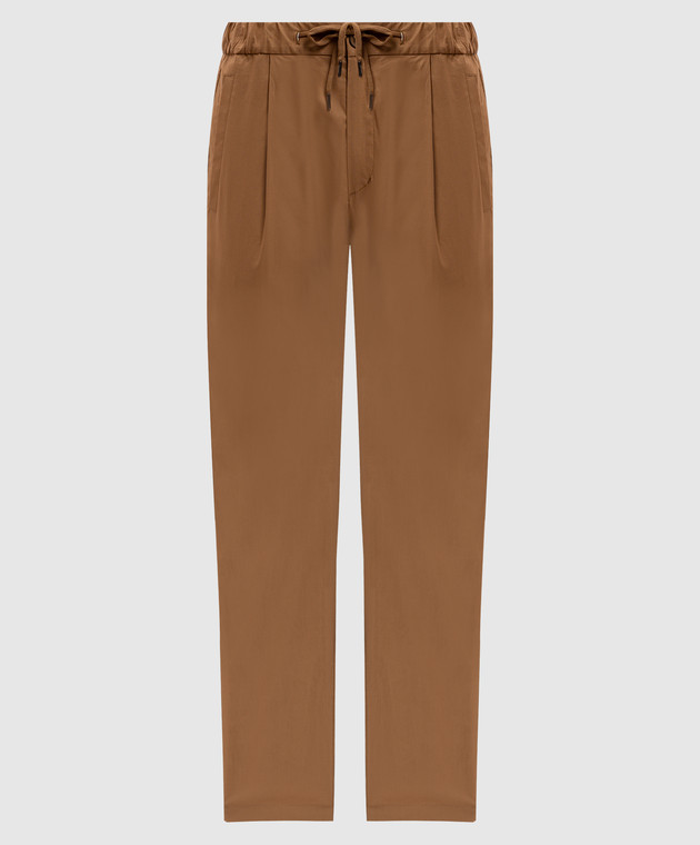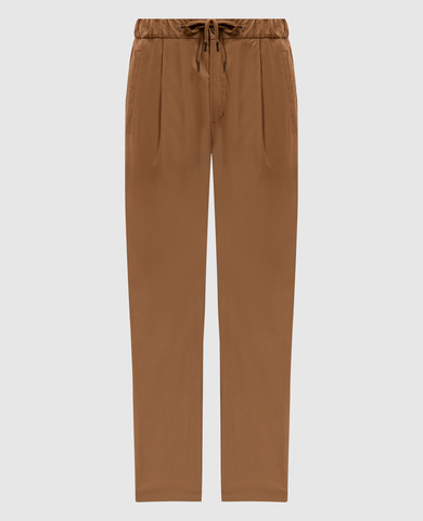 Коричневі штани з металевою пластиною з гравіюванням логотипа