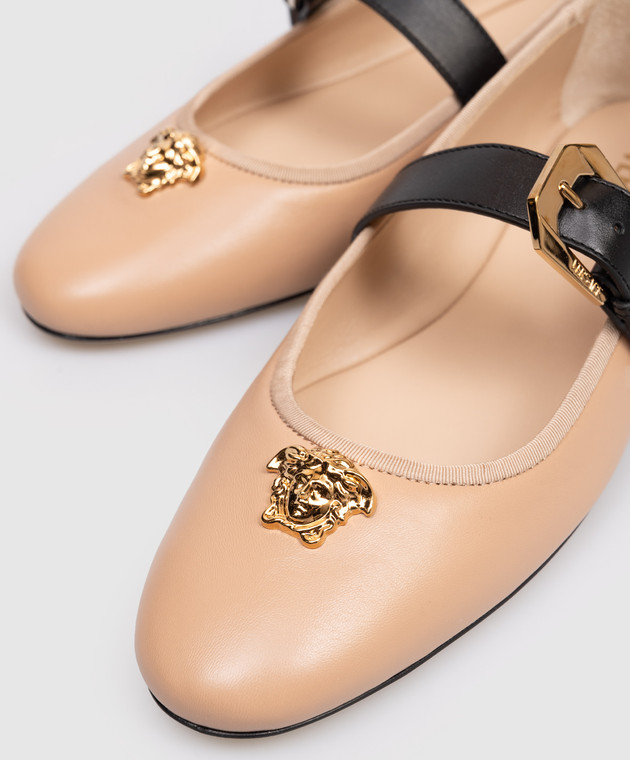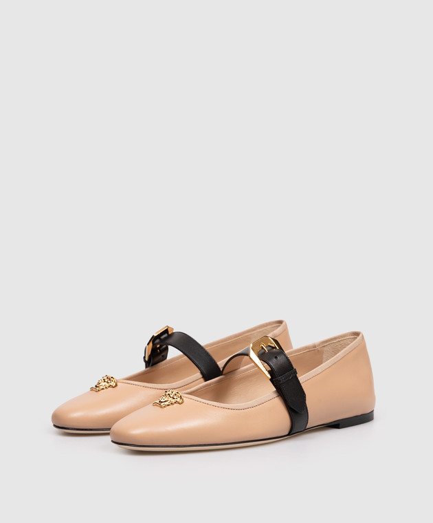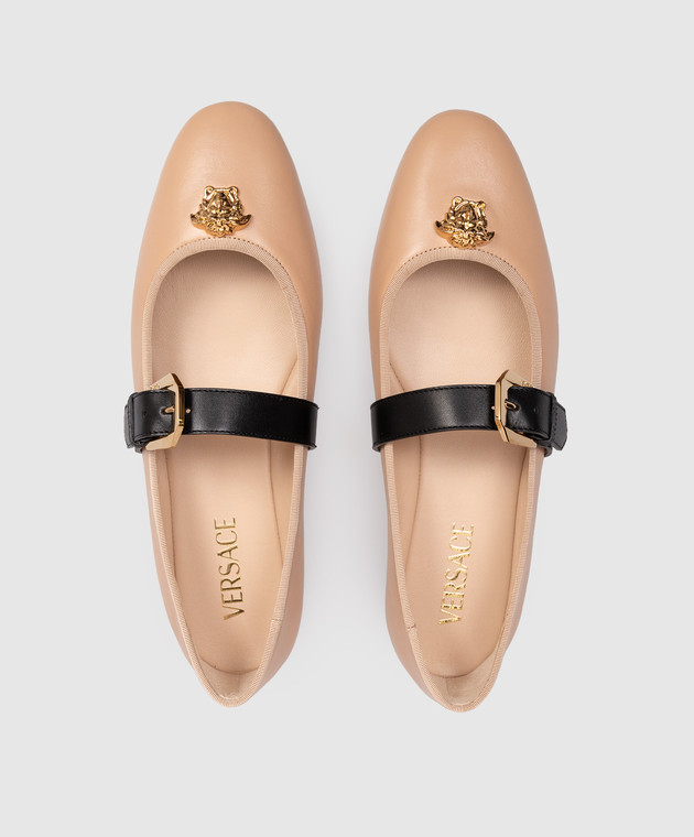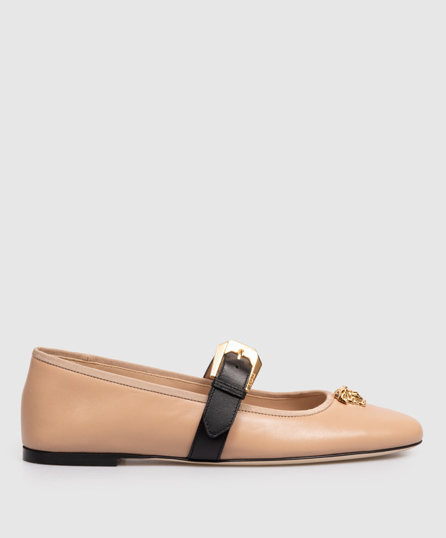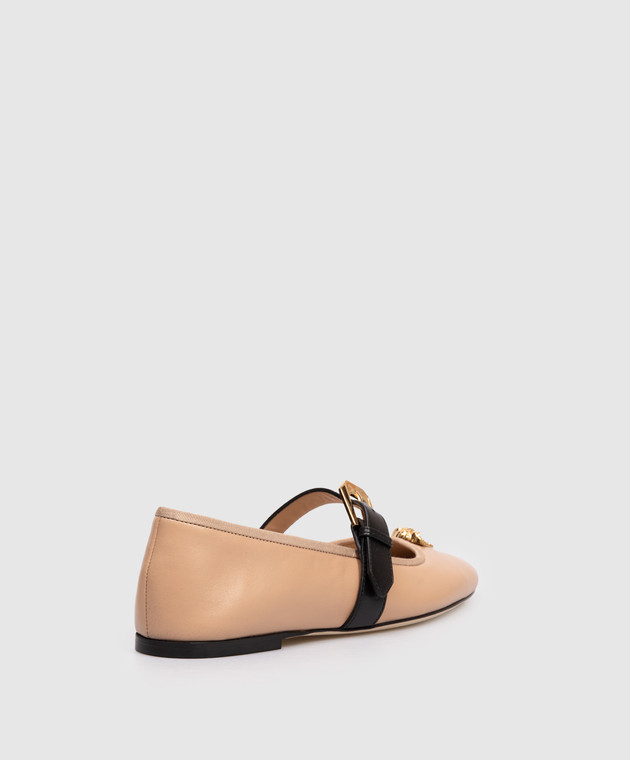 Коричневі шкіряні балетки з фактурною емблемою