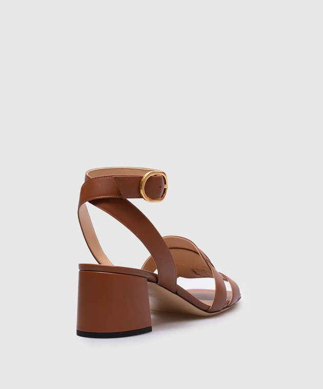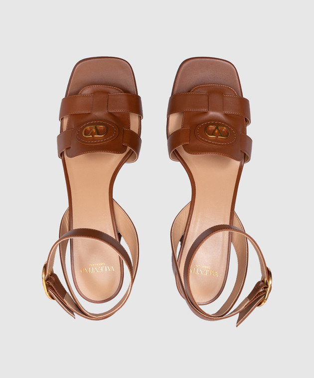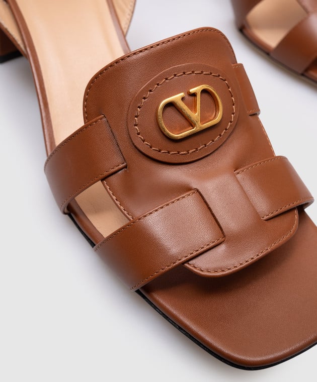 Коричневі шкіряні босоніжки з металевою емблемою VLogo Signature