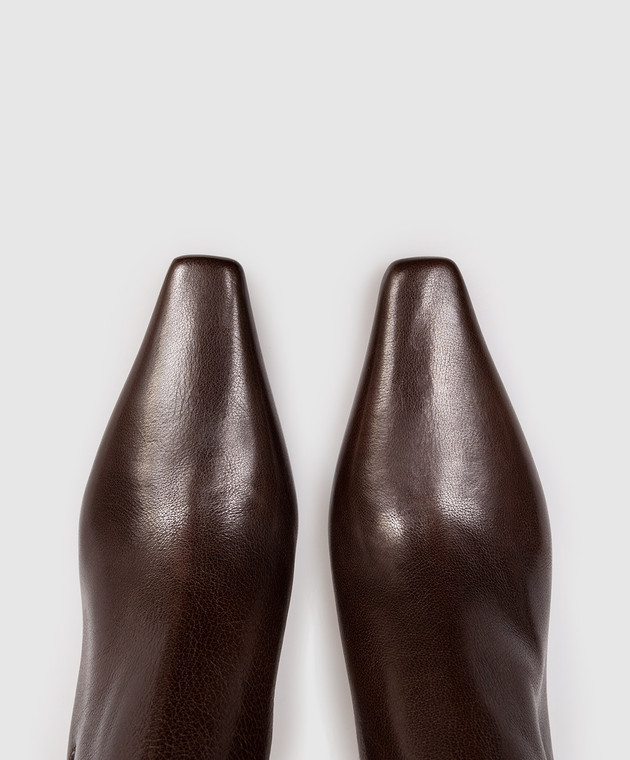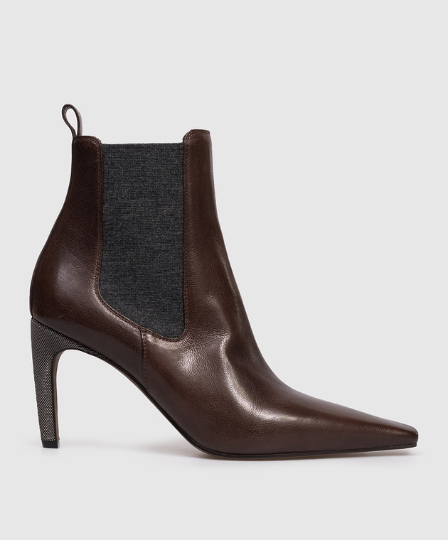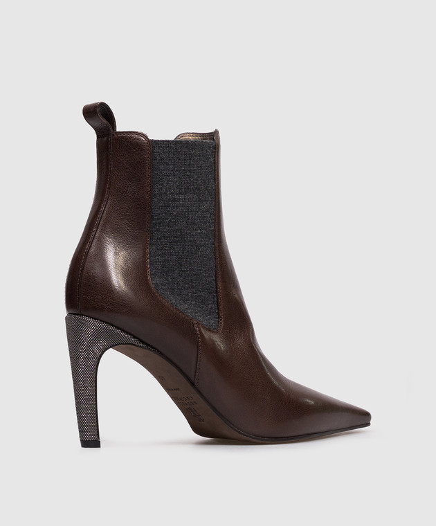 Коричневі шкіряні ботильйони з ланцюжком моніль