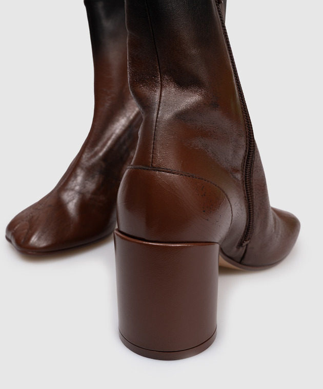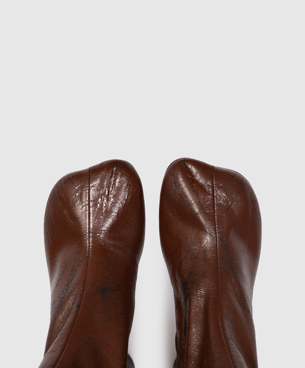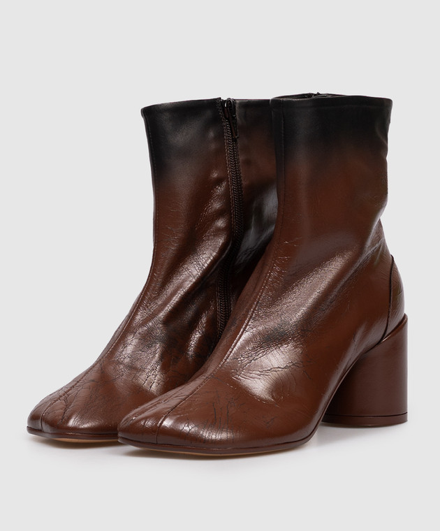 Коричневиі шкіряні ботильйони з ефектом кракелюру