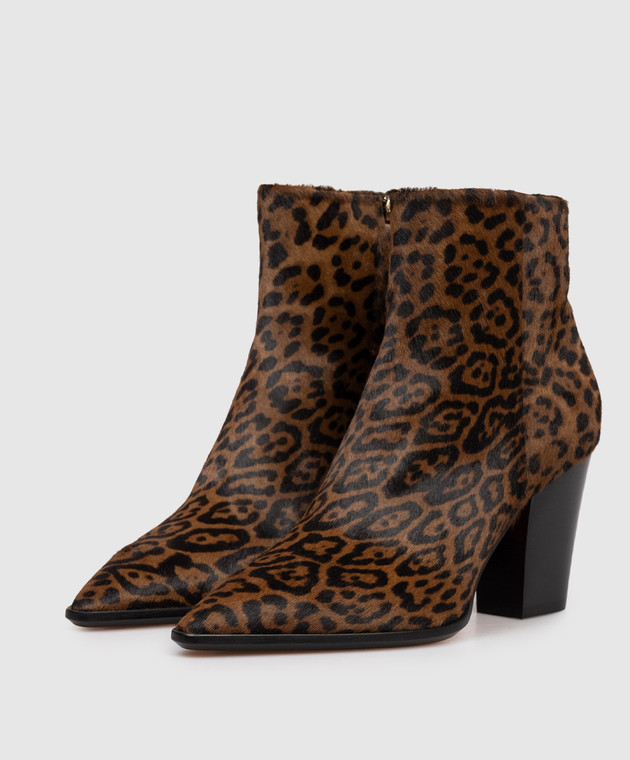 Коричневі шкіряні ботильйони в анімалістичний принт