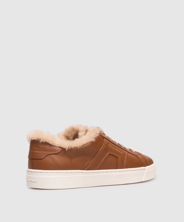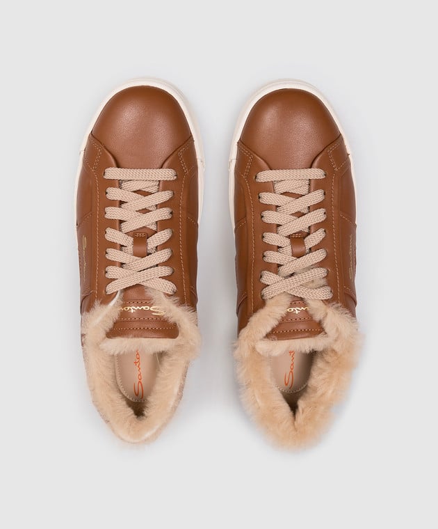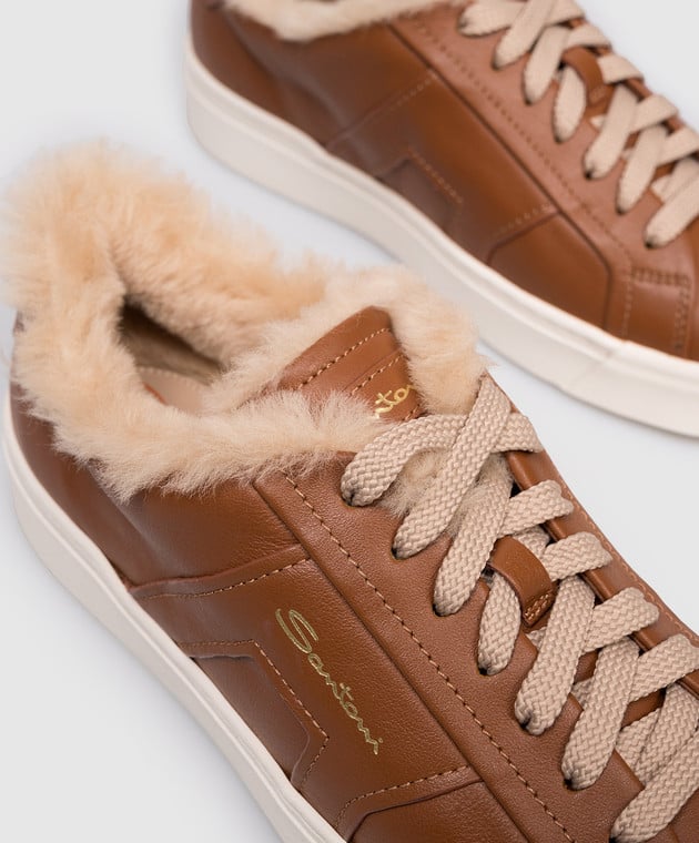 Коричневі шкіряні кеди на хутрі