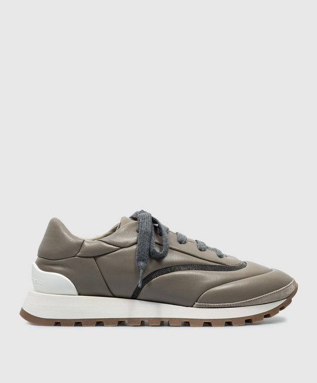 Коричневі шкіряні кросівки з ланцюжком моніль