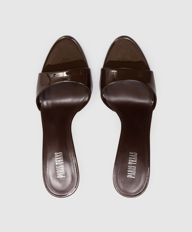 Коричневі шкіряні лаковані мюлі LIDIA