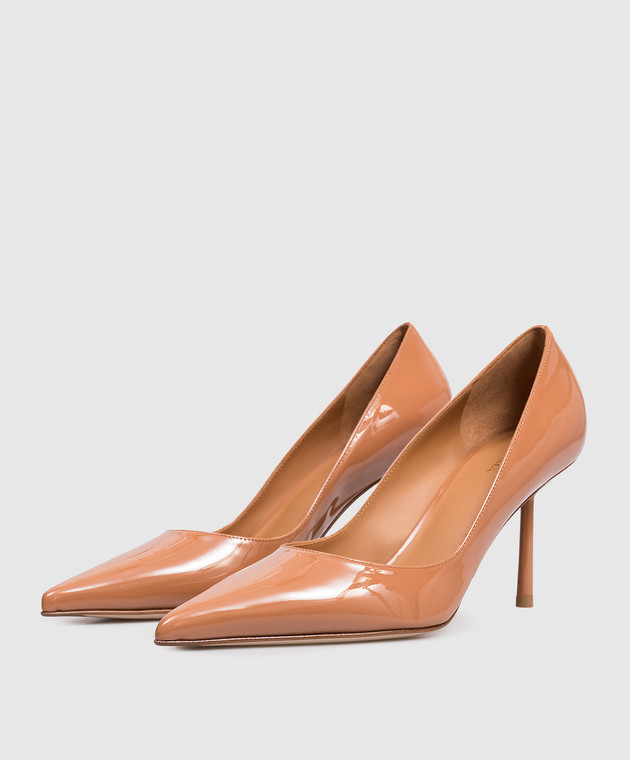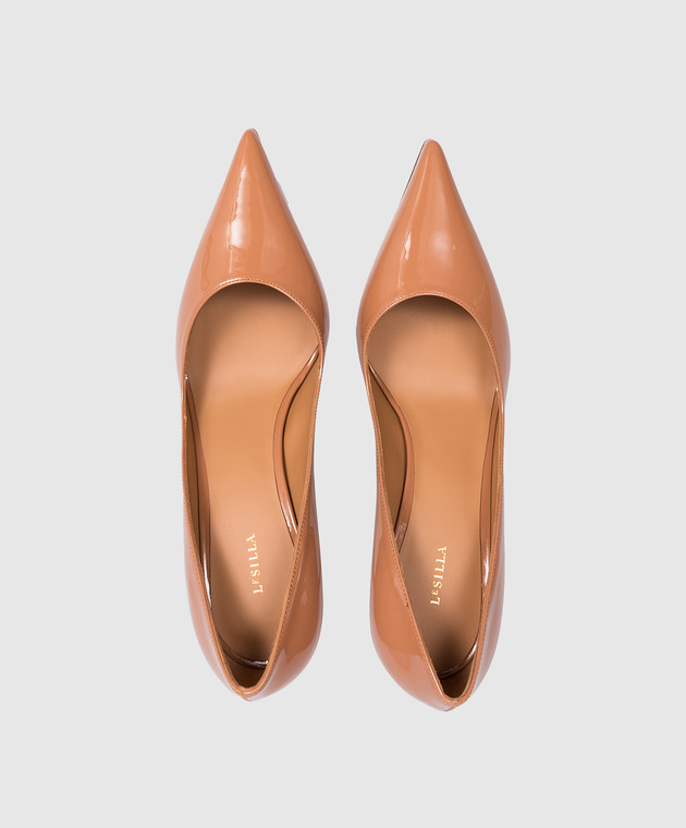 Коричневі шкіряні лаковані туфлі Bella
