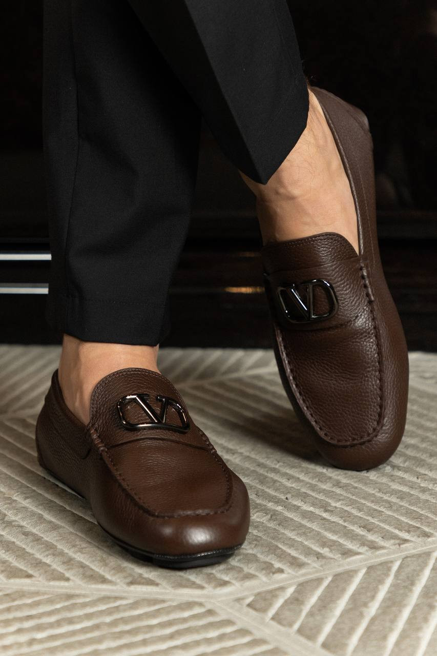 Коричневі шкіряні мокасини з логотипом Vlogo Signature