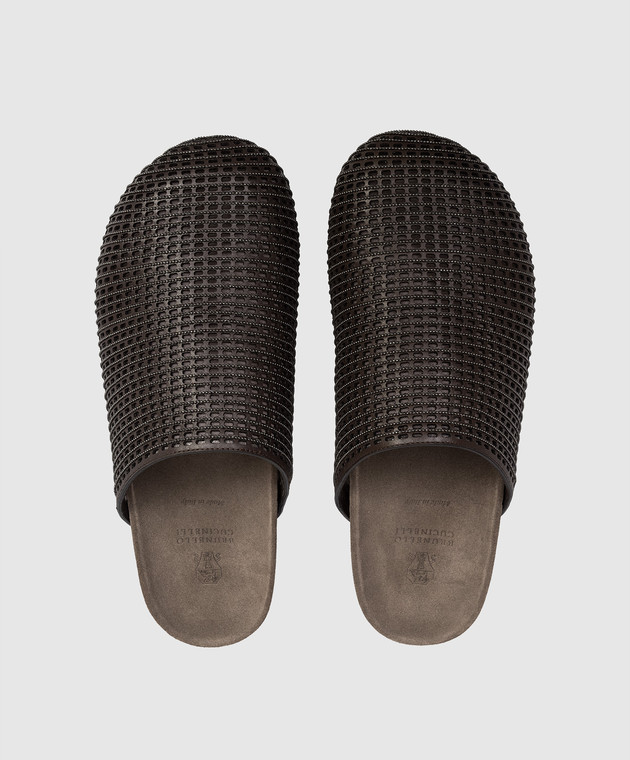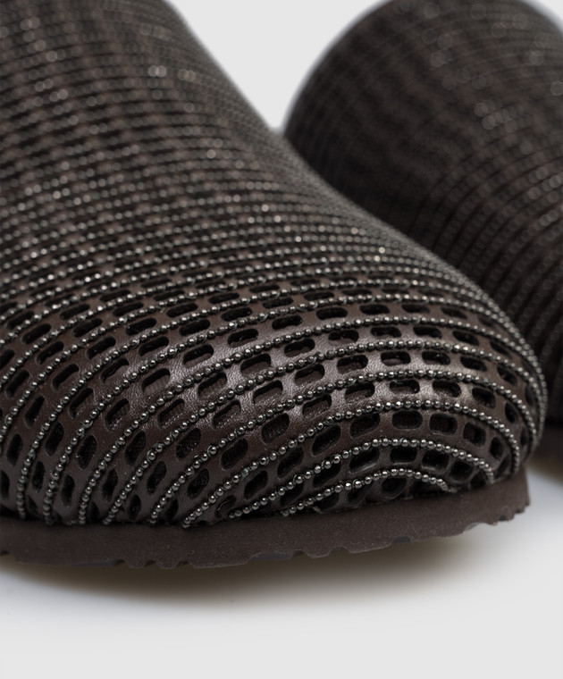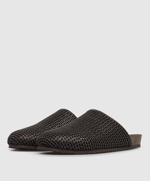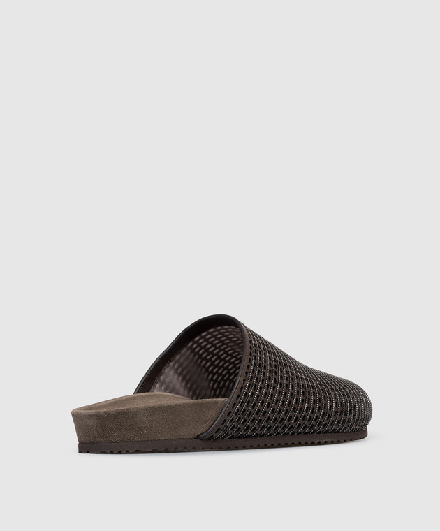 Коричневі шкіряні мюлі з ланцюжком моніль