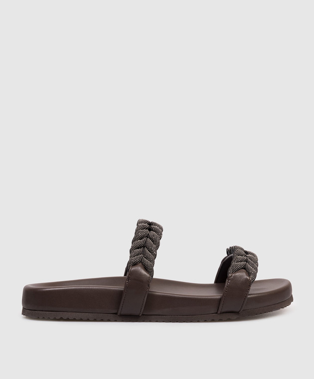 Коричневі шкіряні шльопанці з ланцюжком моніль