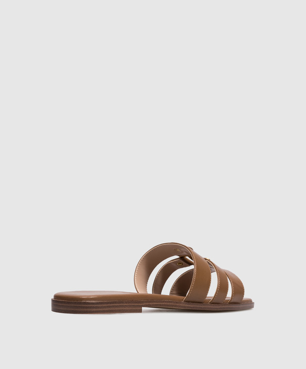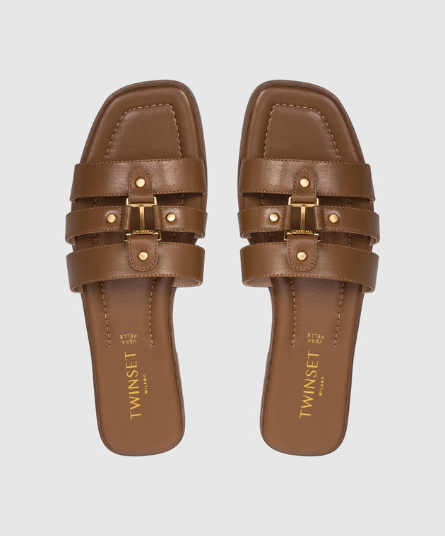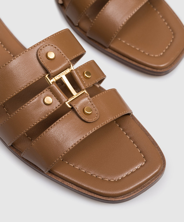 Коричневі шкіряні шльопанці з гравіюванням логотипа