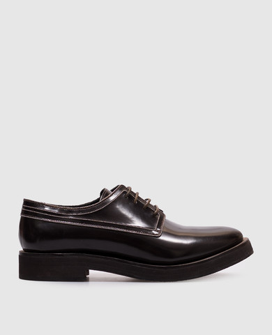 Коричневі шкіряні туфлі з ланцюжком моніль