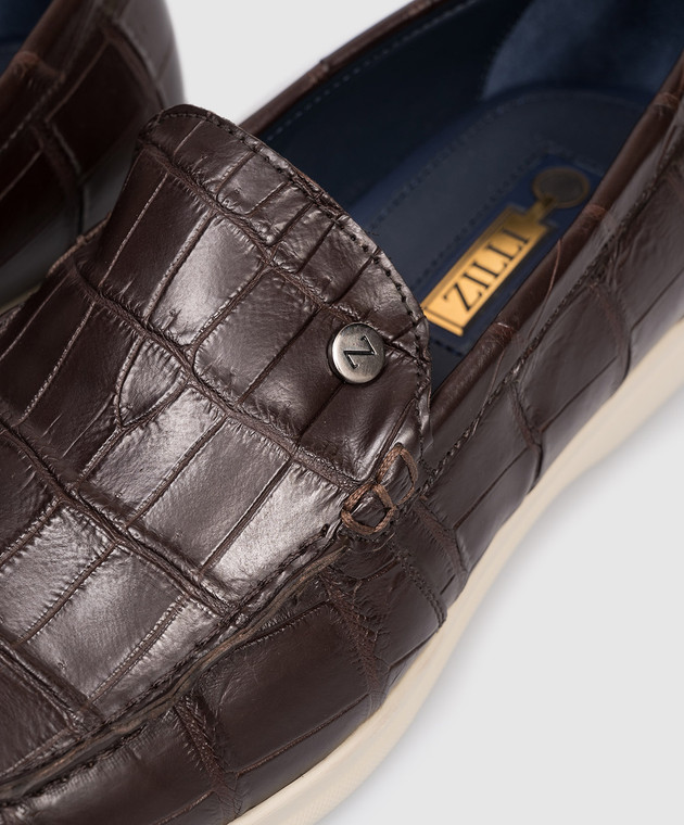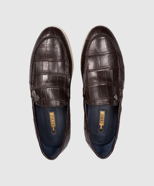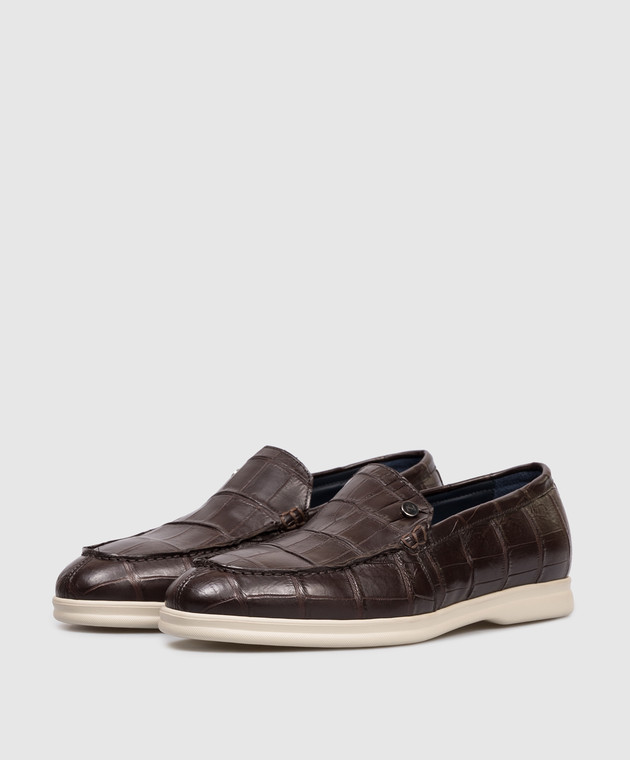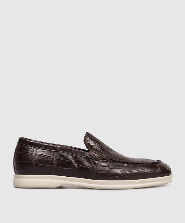 Коричневі лофери зі шкіри крокодила