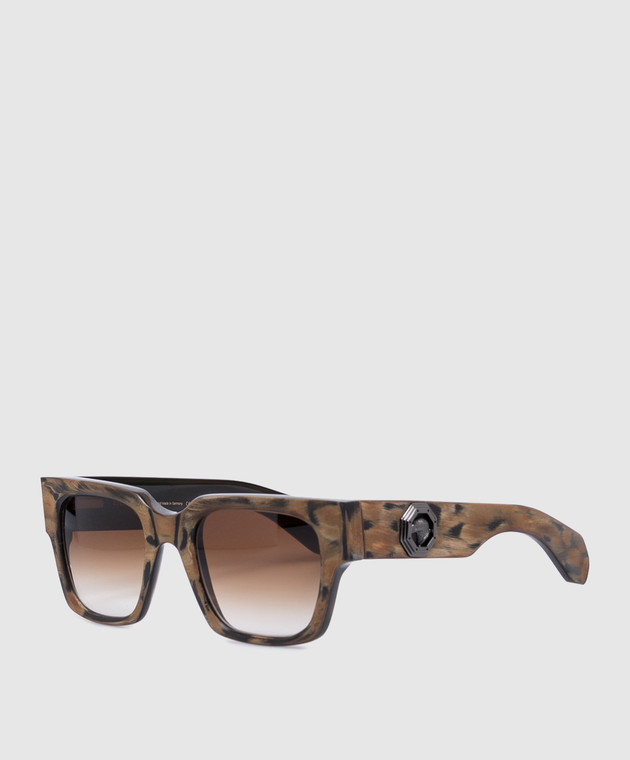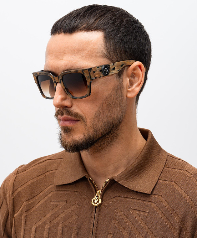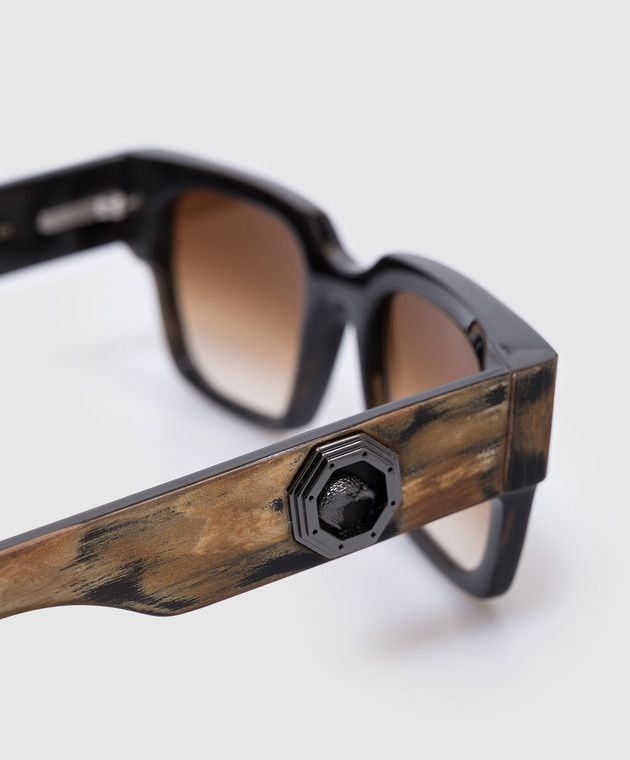Коричневі сонцезахисні окуляри з емблемою з рутенієвим покриттям