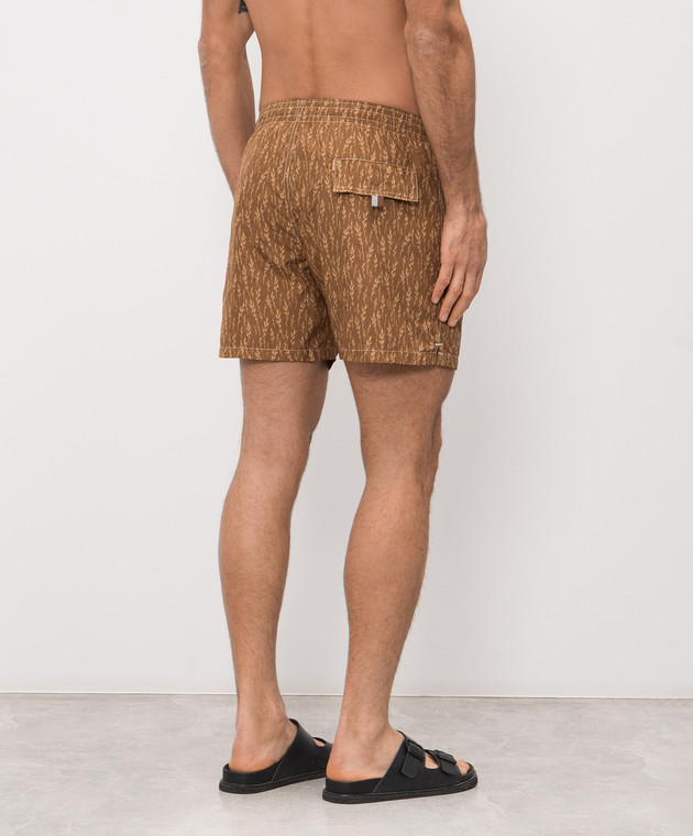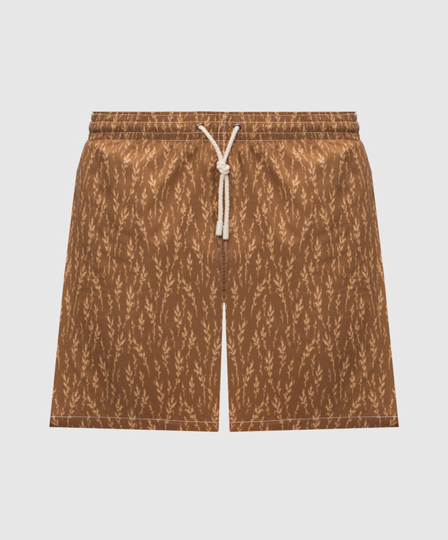 Коричневі шорти для плавання в брендовий принт