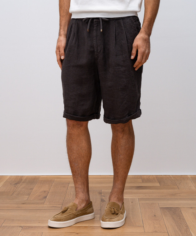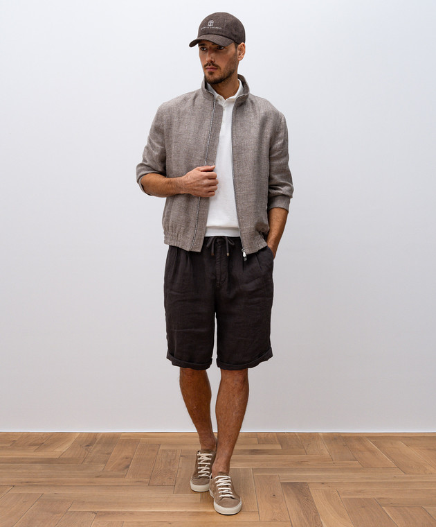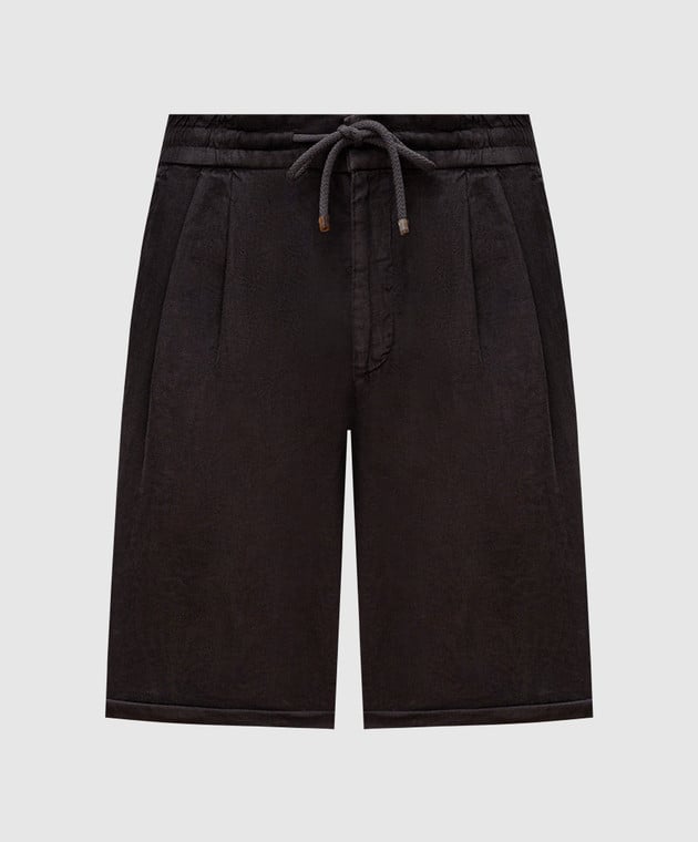 Коричневі шорти з льону з відворотами