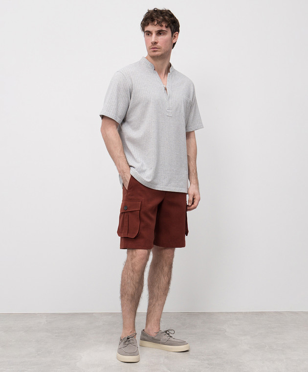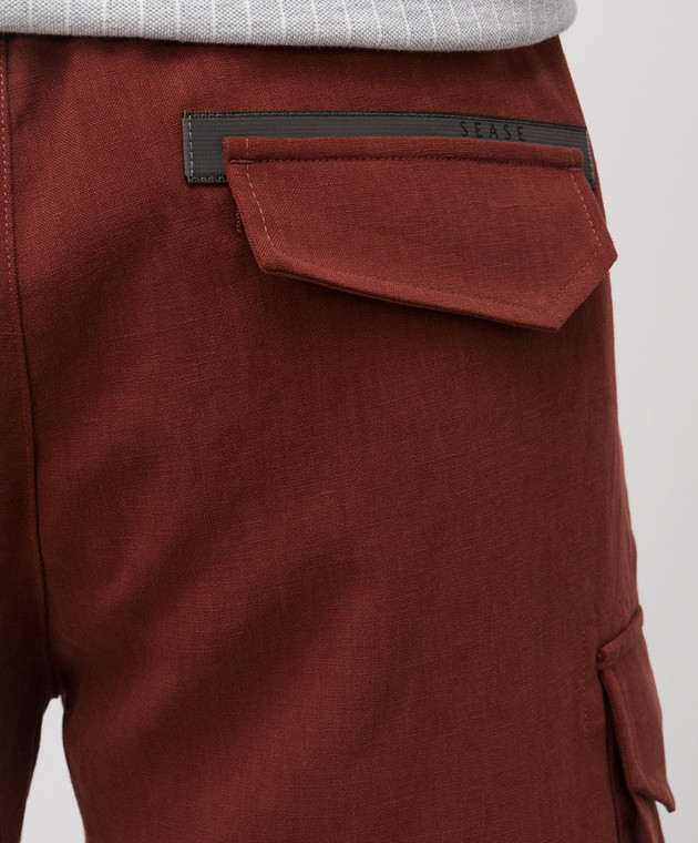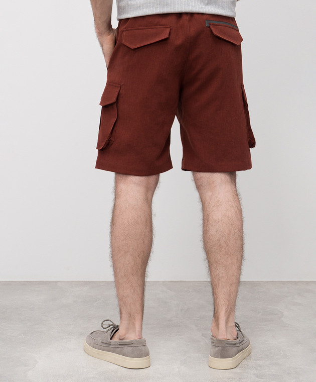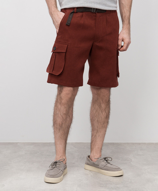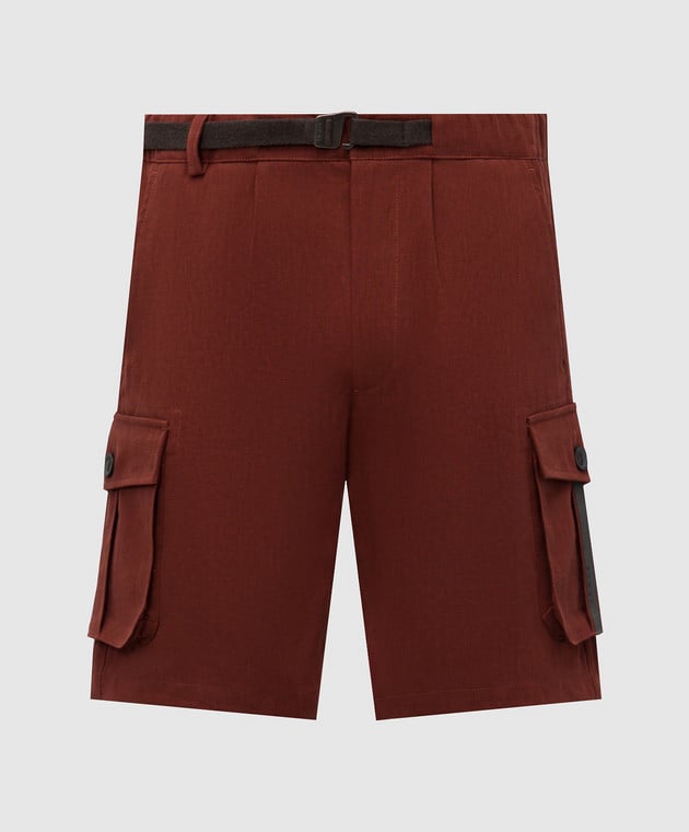Коричневі шорти-карго з льону