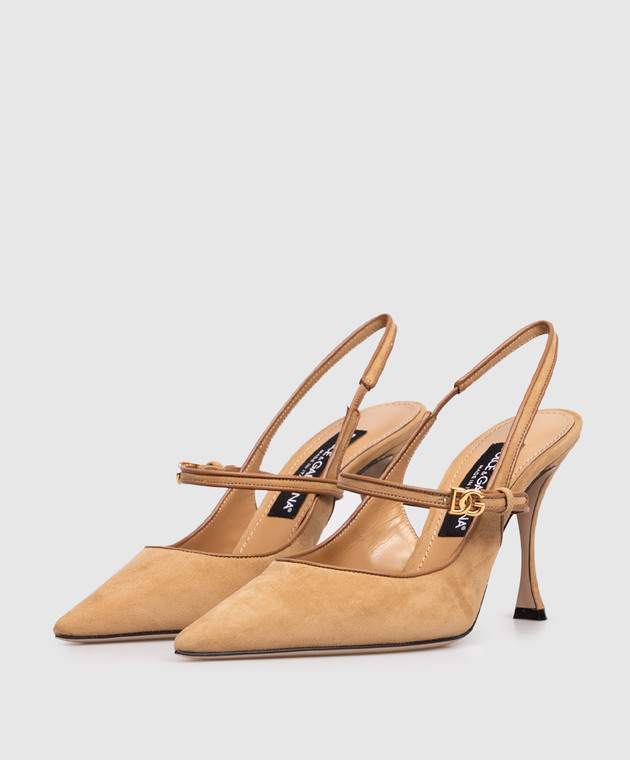 Коричневі замшеві слінгбеки з логотипом