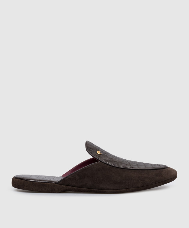 Коричневі замшеві капці зі шкірою крокодила