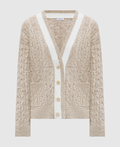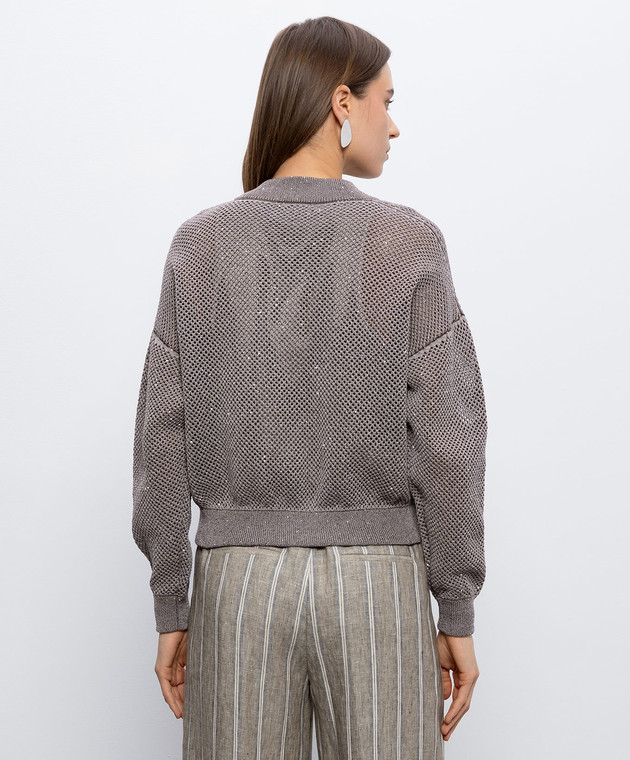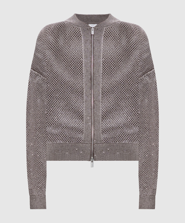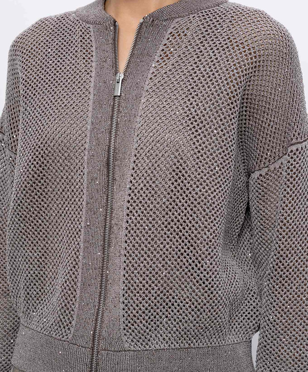 Коричневий ажурний кардиган з паєтками