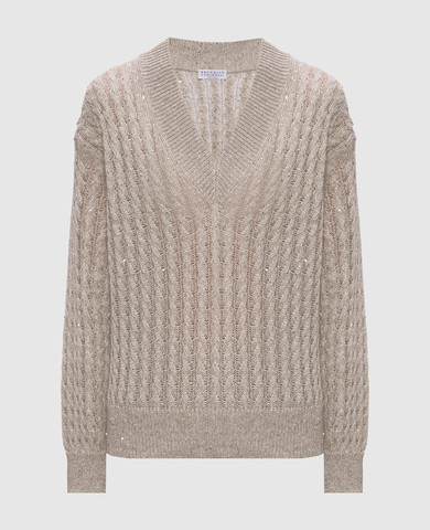 Коричневий ажурний пуловер