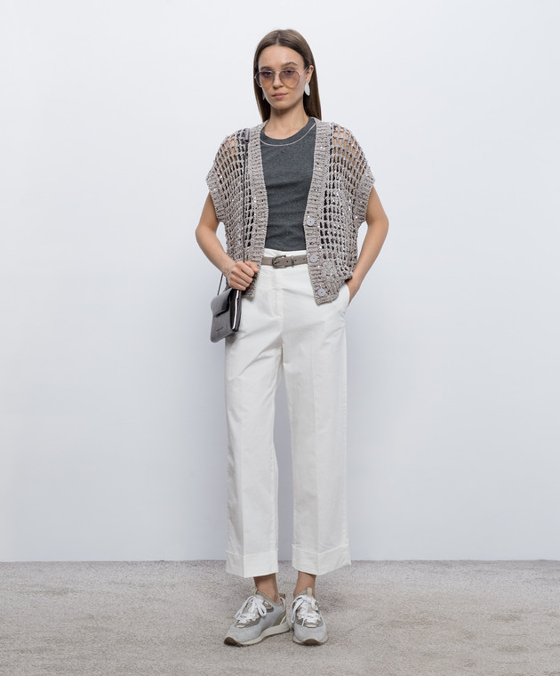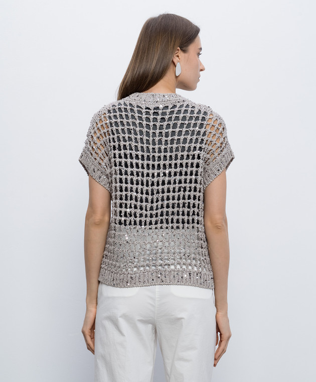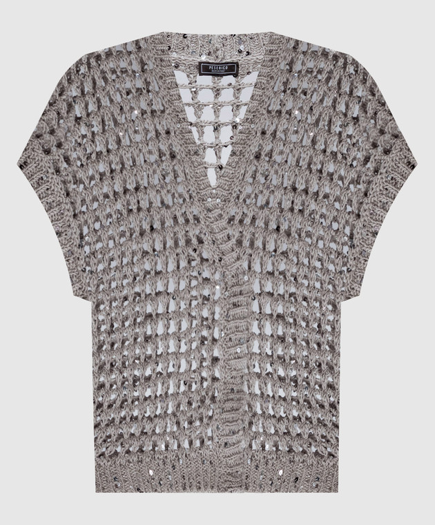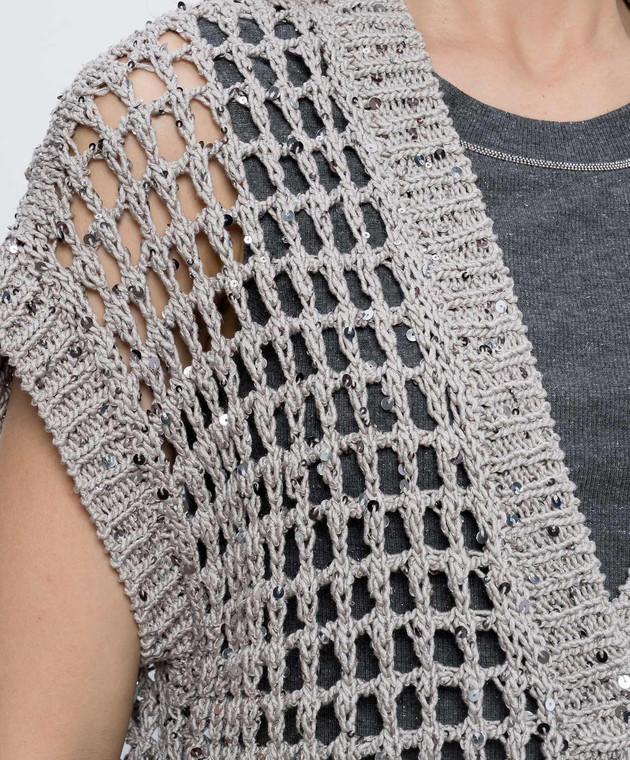 Коричневий ажурний жилет з паєтками