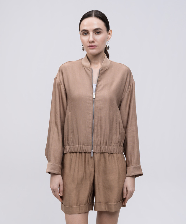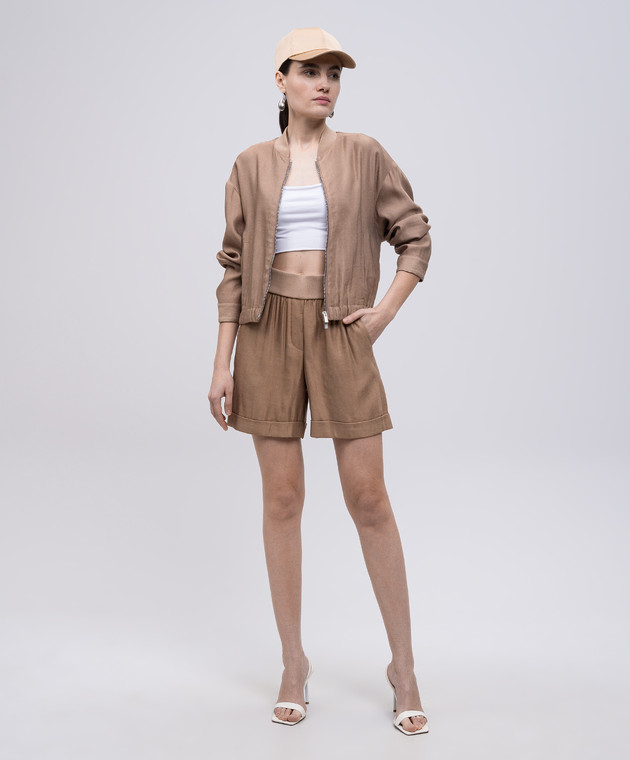 Бежевий бомбер з льоном