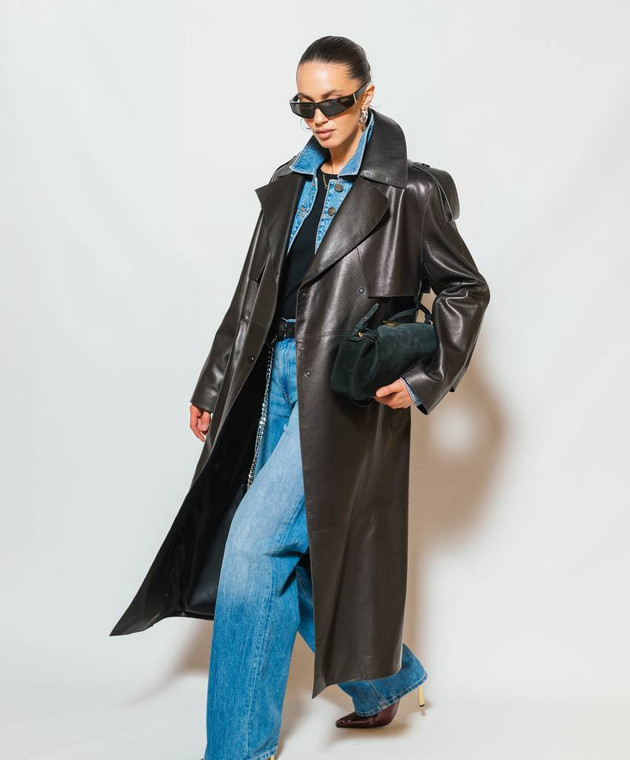 Коричневий двобортний шкіряний тренч