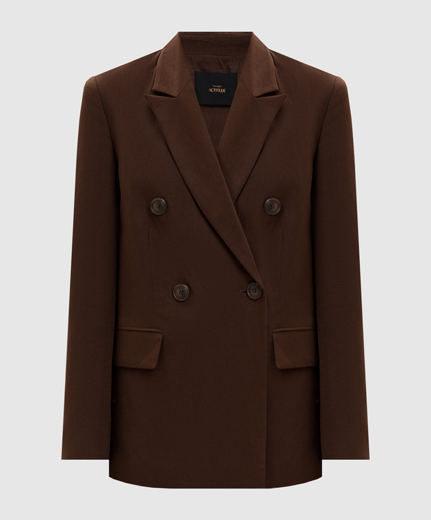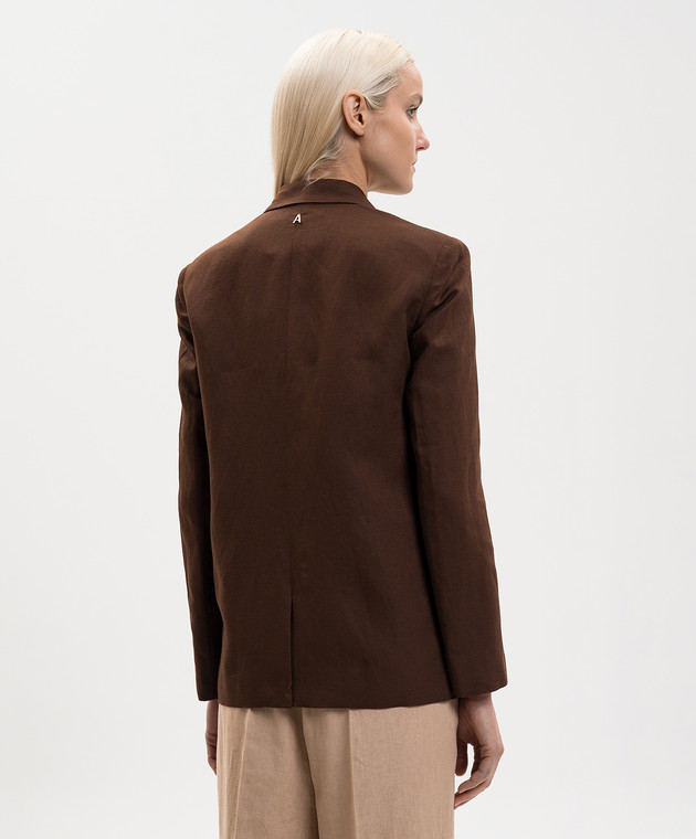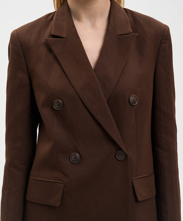 Коричневий двобортний жакет з льоном