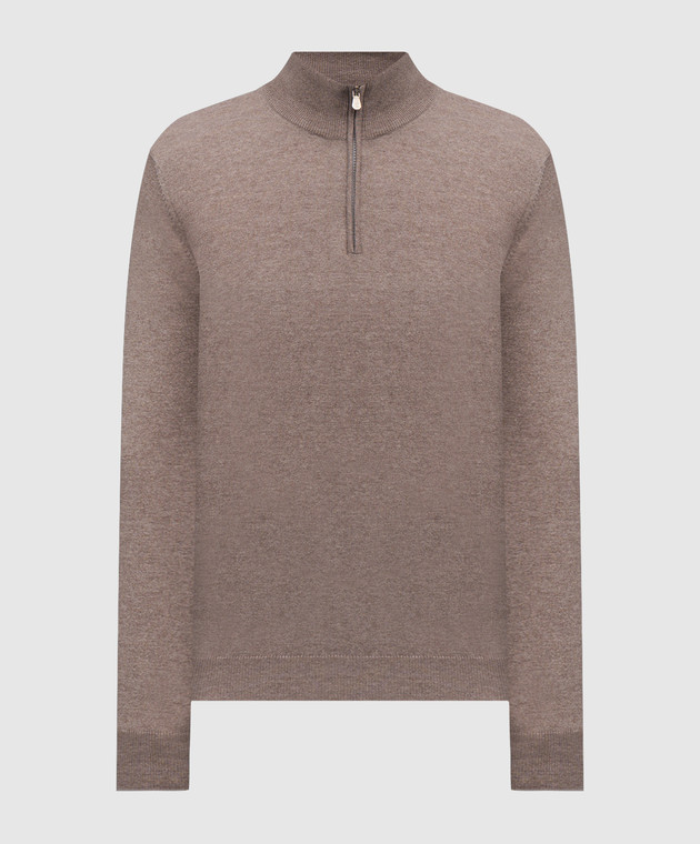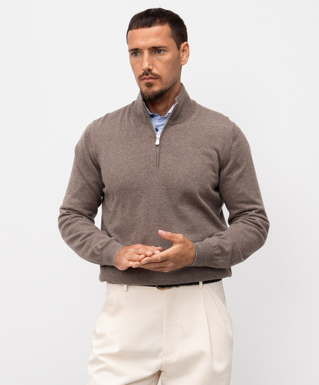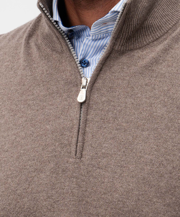 Brunello Cucinelli Коричневий джемпер з кашеміру з блискавкою M2200124