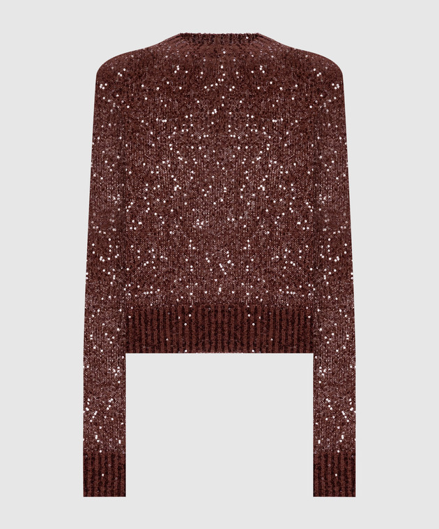 Коричневий джемпер з льону, кашеміру та шовку в паєтки