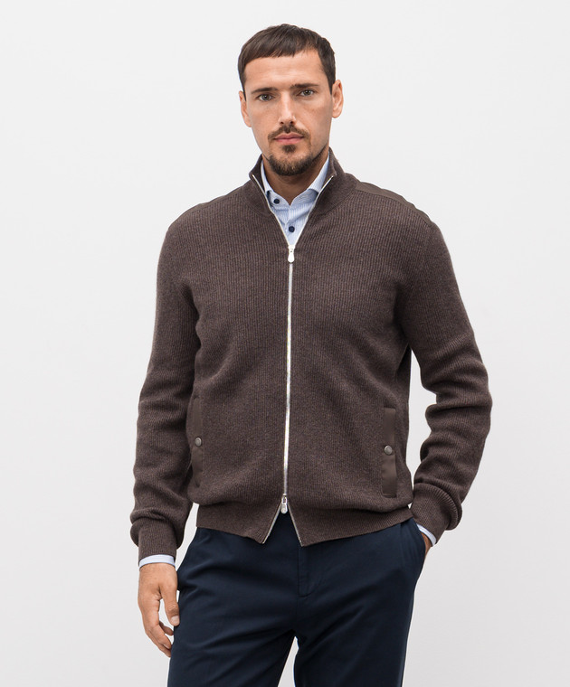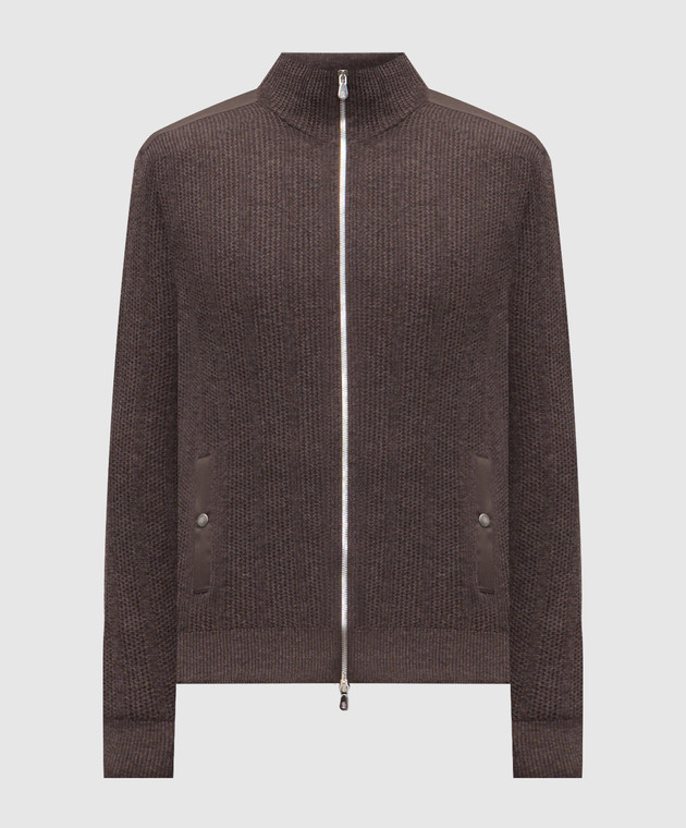 Коричневий кардиган з кашеміру в рубчик