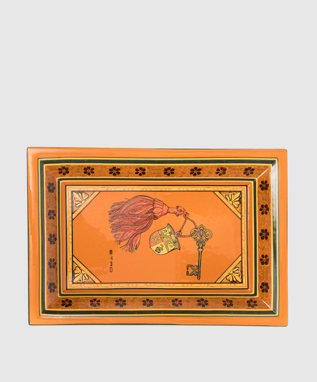 Коричневий керамічний лакований піднос з принтом