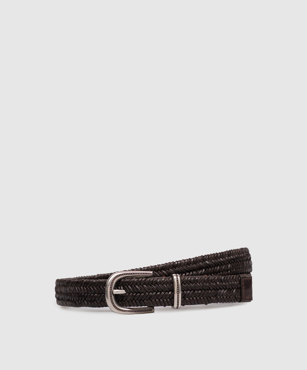 Коричневий шкіряний плетений ремінь