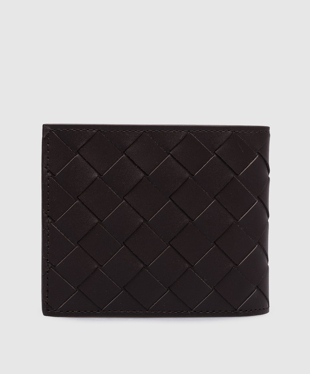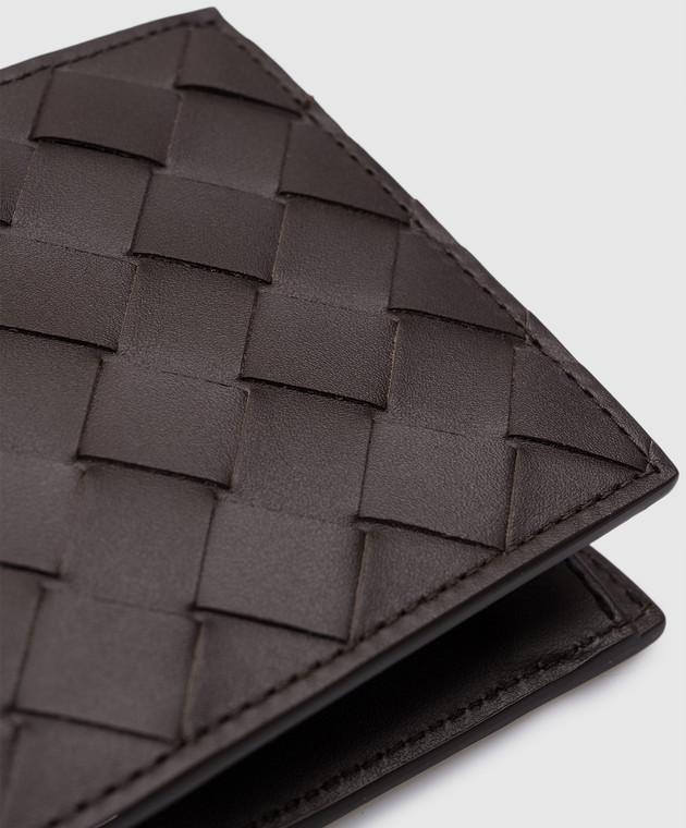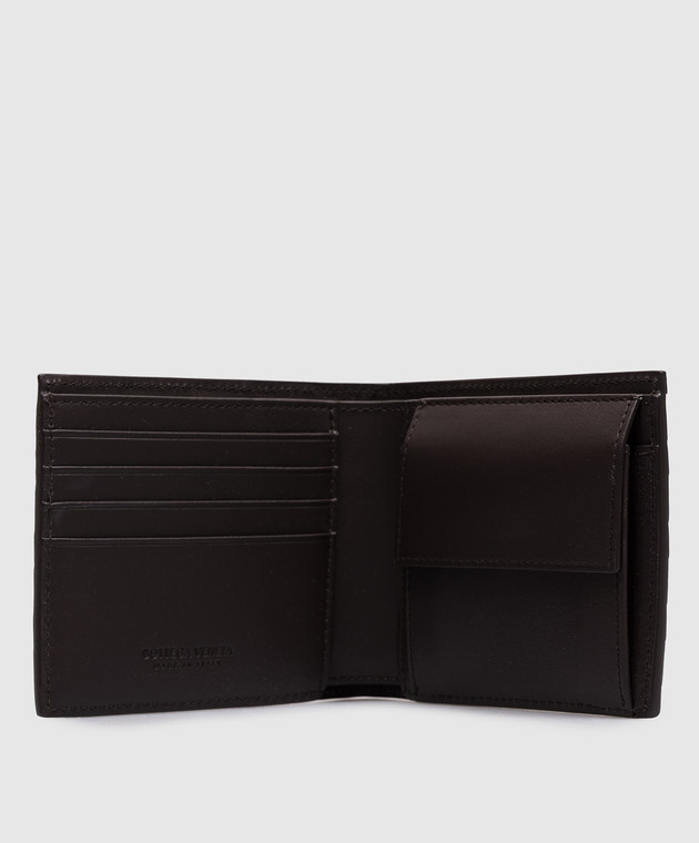Коричневе шкіряне портмоне Intrecciato Bi-Fold