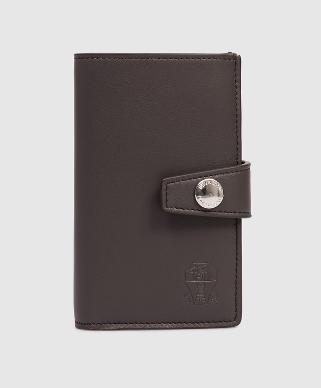 Коричневе шкіряне портмоне з тисненням емблеми
