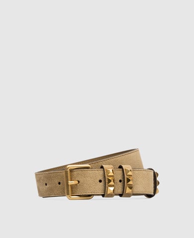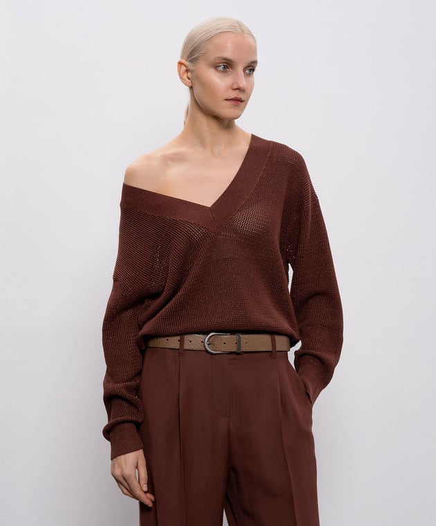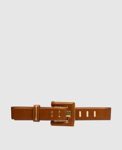 Коричневий шкіряний ремінь з ланцюжком моніль