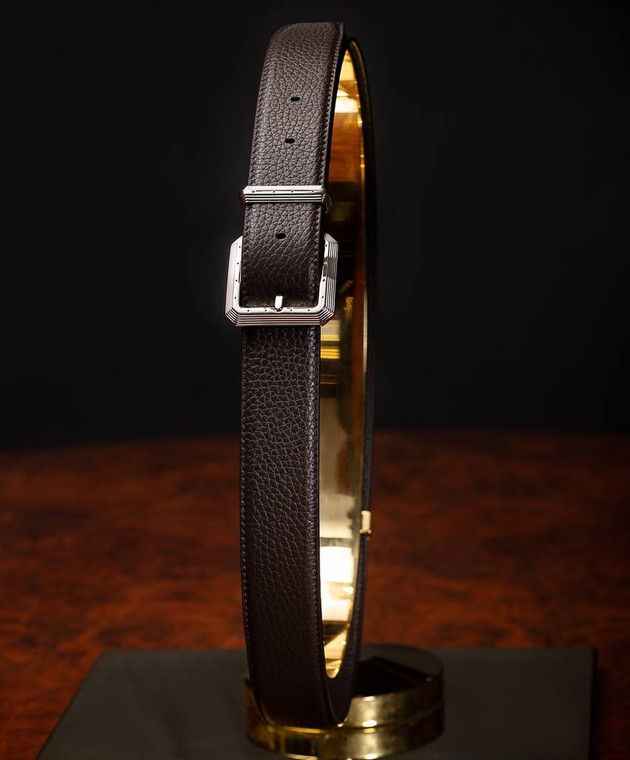 Коричневий шкіряний ремінь з гравіюванням логотипа