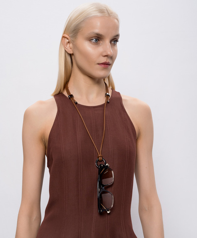 Коричневий шкіряний шнурок для окулярів з логотипом