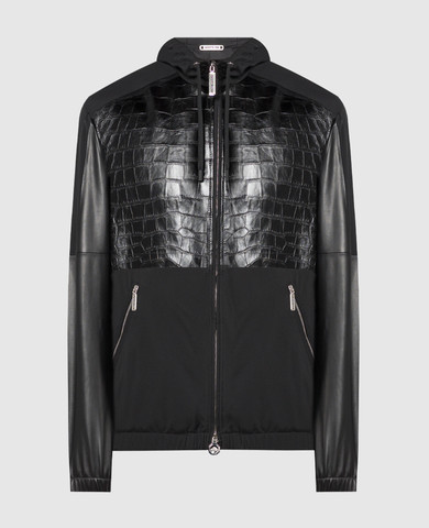 Коричнева кутрка з хутра з вставками зі шкіри крокодила