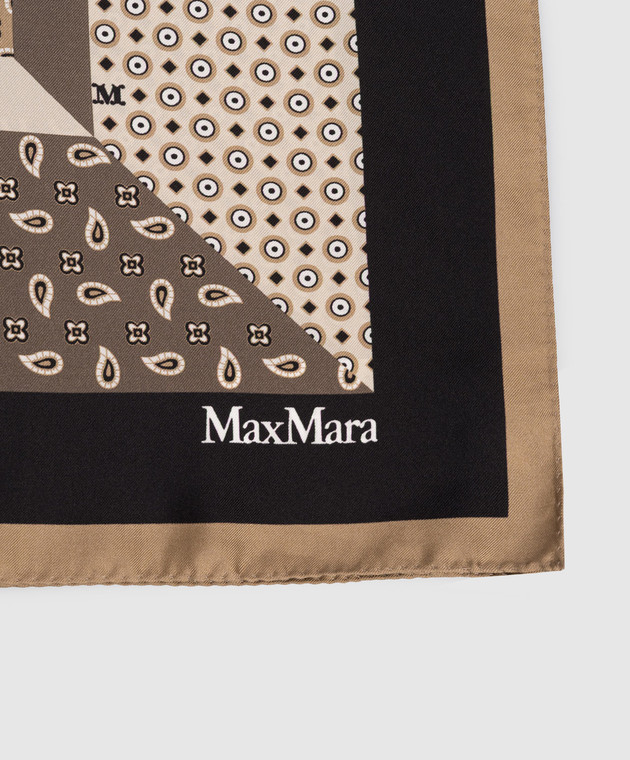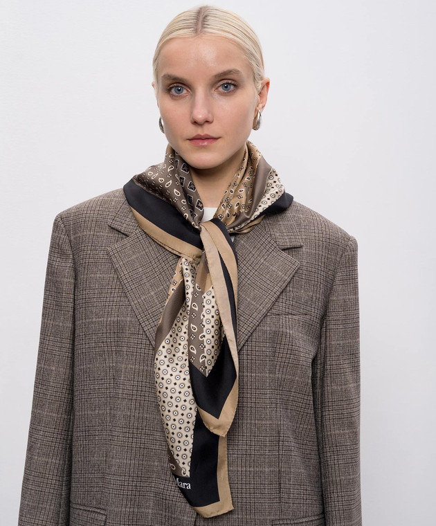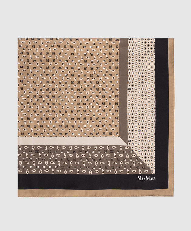 Коричнева хустка CARRE із шовку в брендовий принт