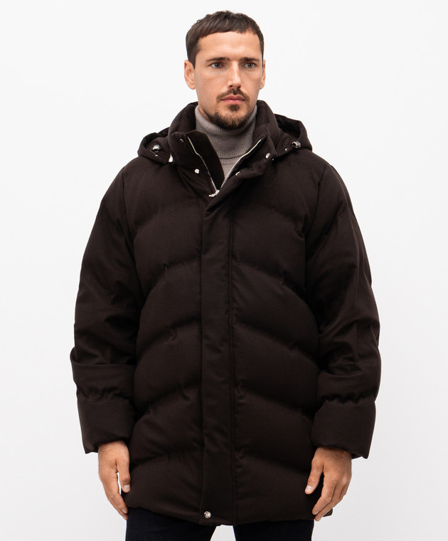 Коричневий пуховик з кашеміру