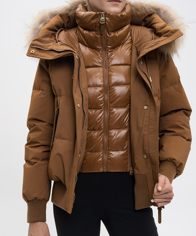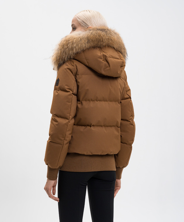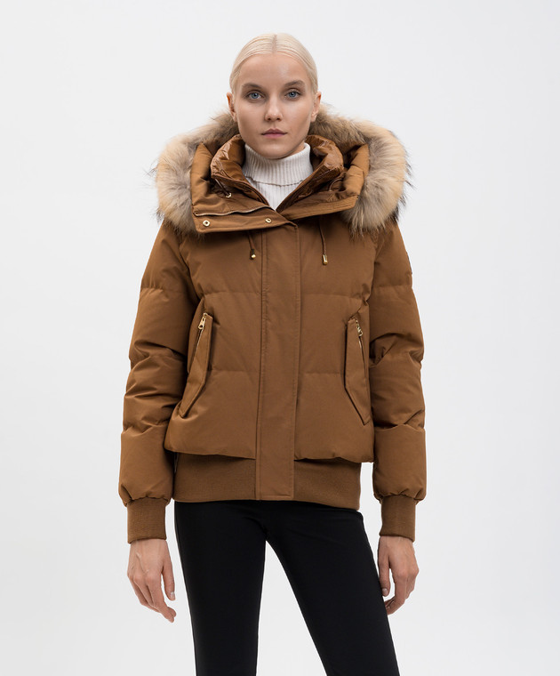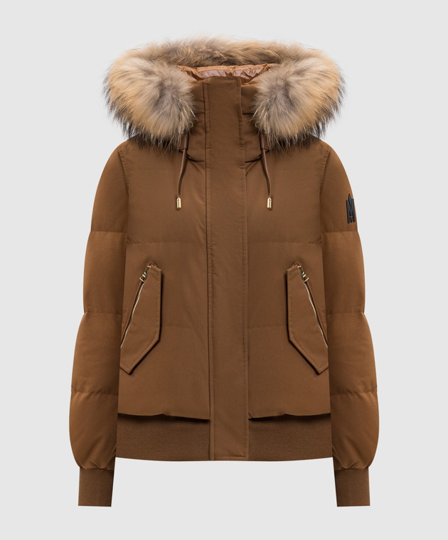 Коричневий пуховик NEFI-F з хутром єнота