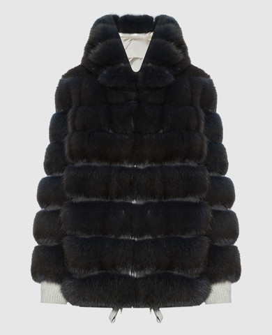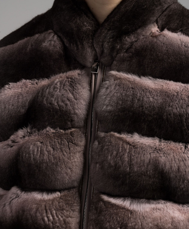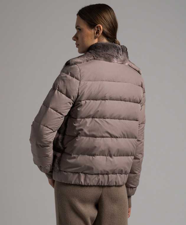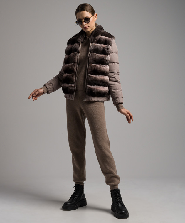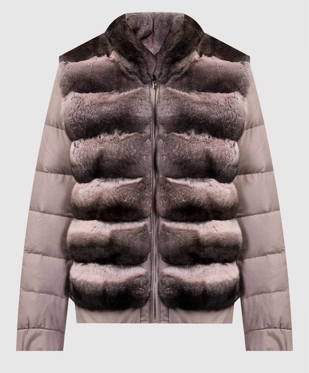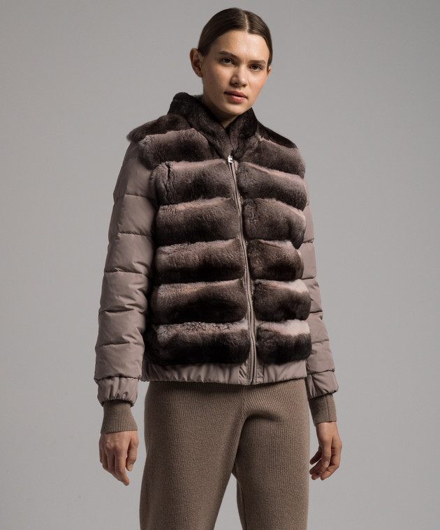 Коричневий пуховик з хутром шиншили з ланцюжком моніль