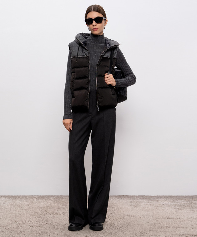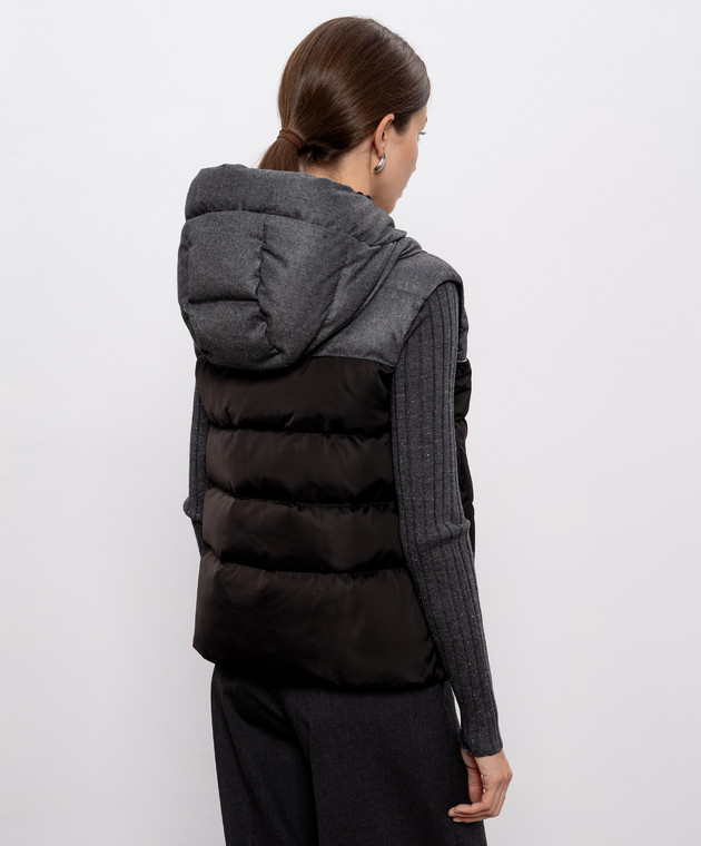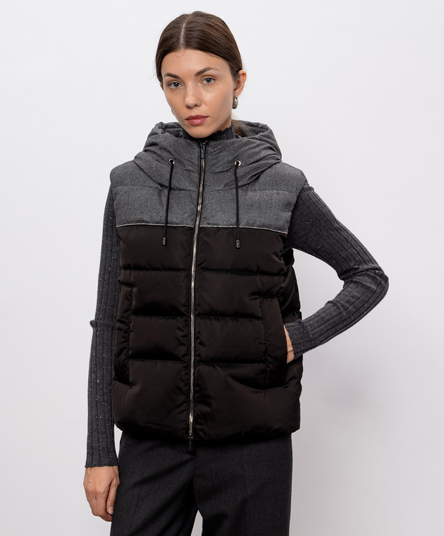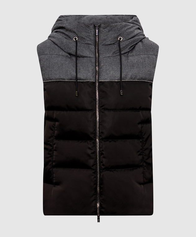 Коричневий пуховий жилет з ланцюжком моніль