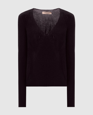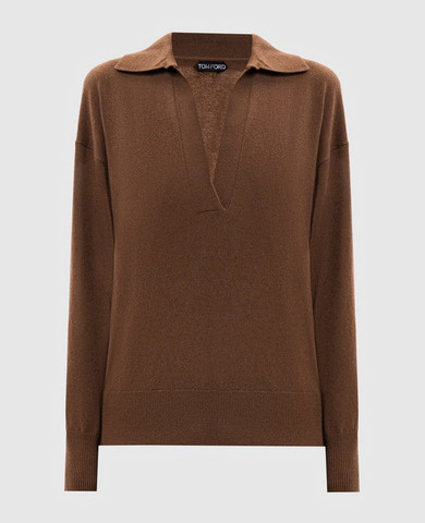 Коричневий пуловер з кашеміру і шовку з монограмою логотипа
