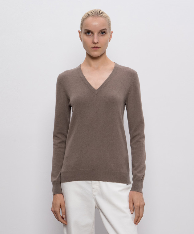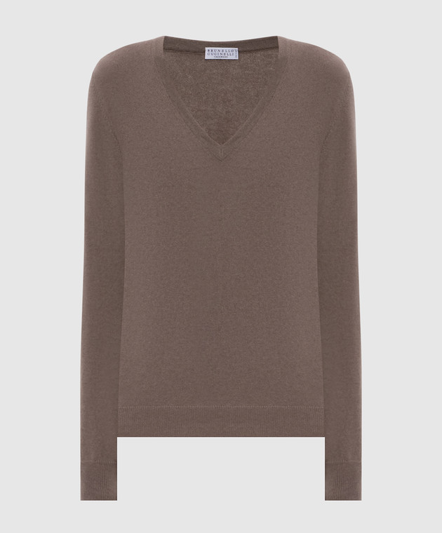 Коричневий пуловер з кашеміру з ланцюжком моніль