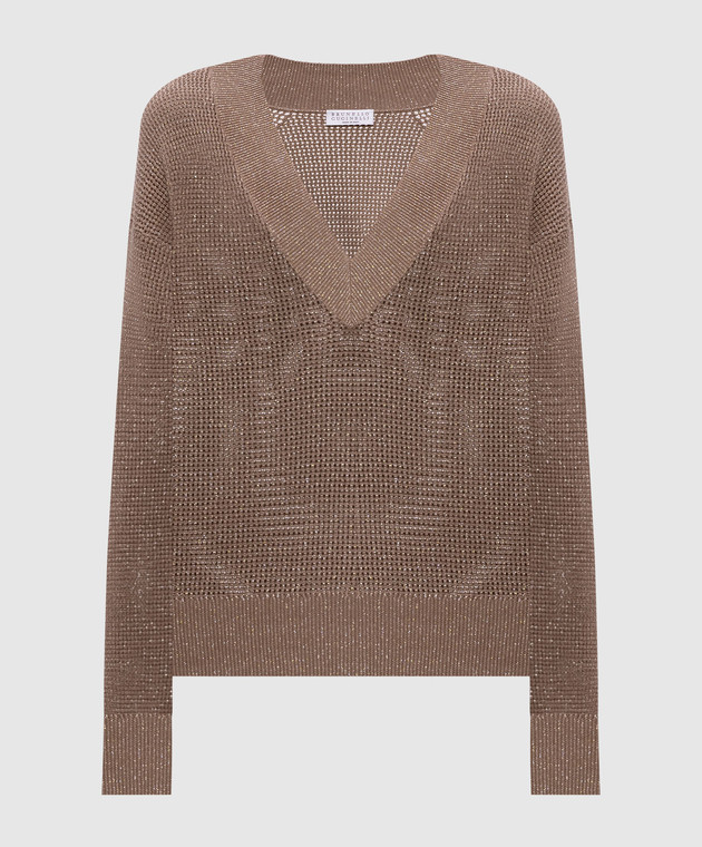Коричневий пуловер з люрексом