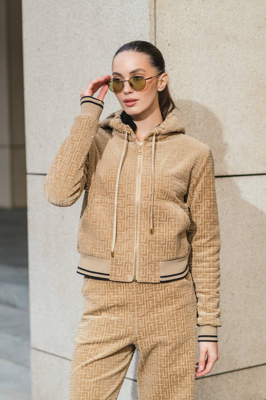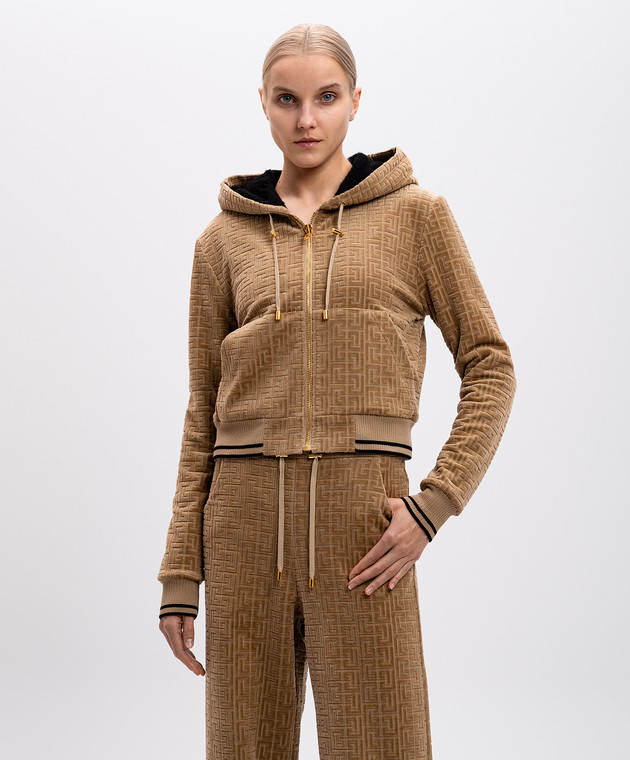 Коричнева спортивна куртка у візерунок монограми логотипа
