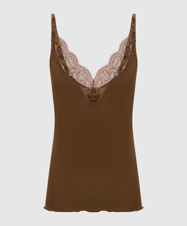 Коричневий топ із шовку в рубчик